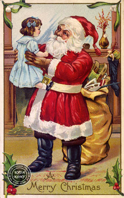Оригинал старинной открытки с Дедом Морозом, выпущенной 100 лет назад.